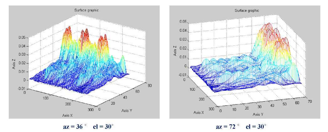 Рис. 4. Вращение двумерной плотности распределения для мембраны по оси Y (az и el – азимутальный и полярный углы в градусах)