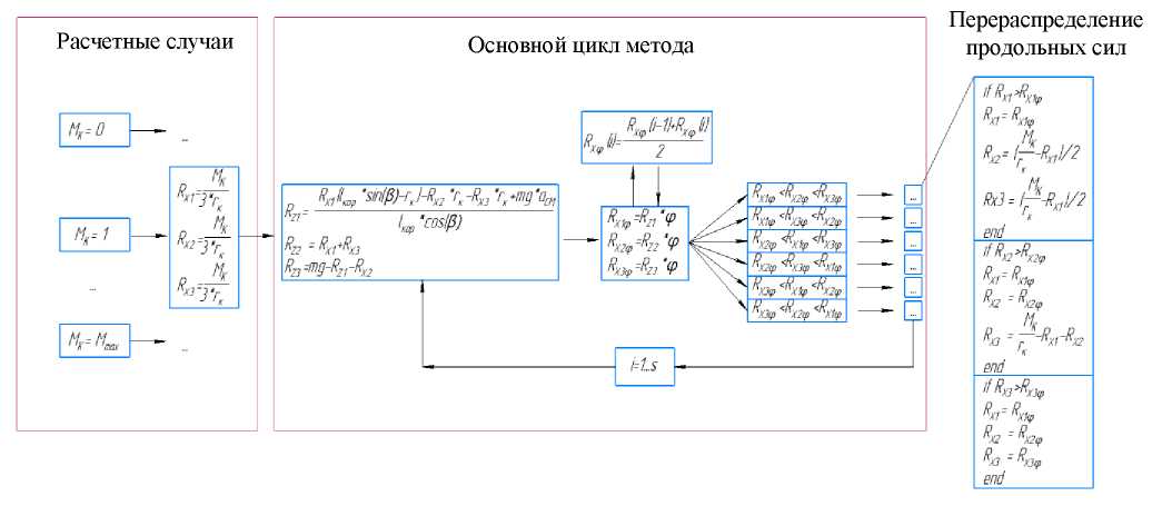 Рис. 4. Схемы алгоритма вычисления внешних сил, действующих на машину при случае А на этапе 2