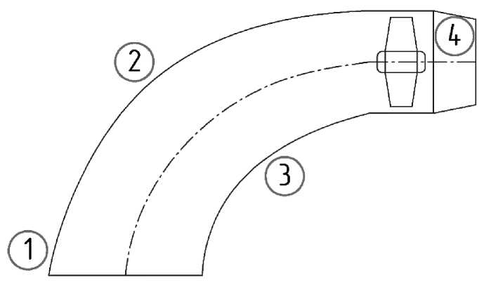 В рамках данного исследования выполнялось совершенствование эжекционной системы водооткачки перспективной амфибийной машины, с подсоединением в выходном напорном патрубке по схеме 4 на рис. 1. Изменение эжектирующего потока вследствие вариации параметров водовода, насосного колеса и направляющего аппарата не рассматривалось в данной работе. Изучалось влияние расположения и конструктивных параметров отверстий в выходном напорном патрубке. Расчетное исследование осуществлялось в программном пакете для инженерной симуляции на основе методов мультифизического моделирования STAR-CCM+. Динамическая вязкость и плотность задавались для воды при температуре 24° С: μ = 8,8871 · 10−4 Па·с; ρ = 997,561 кг/м3.