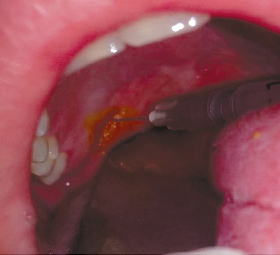 Рис. 3. Палатинальная анестезия (нёбный доступ к крылонёбной ямке) / Fig. 3. Palatinal anesthesia (palatine access to the pterygoid fossa)