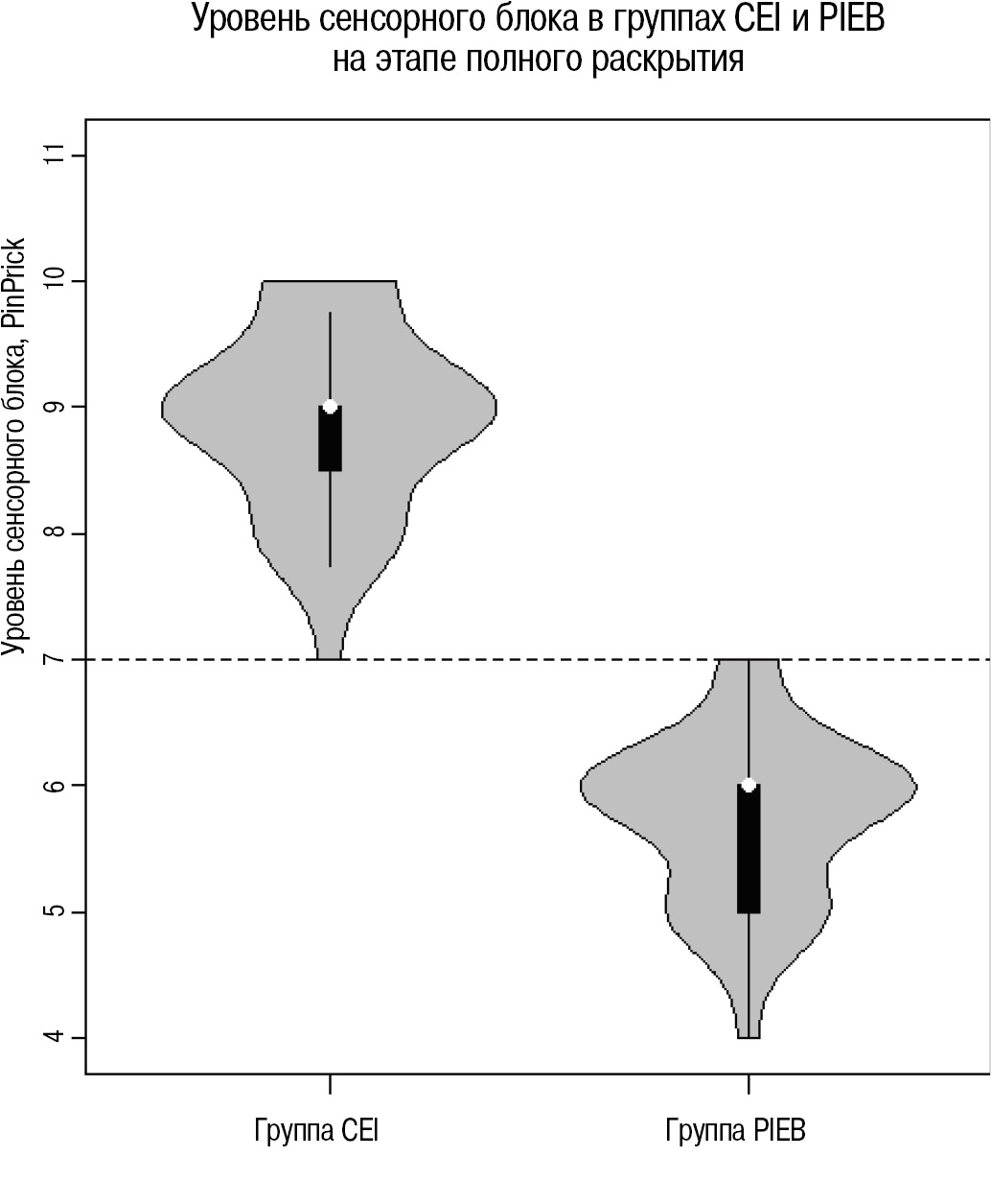 Рис. 6. Сравнение уровней сенсорного блока на этапе полного раскрытия между группами CEI и PIEB