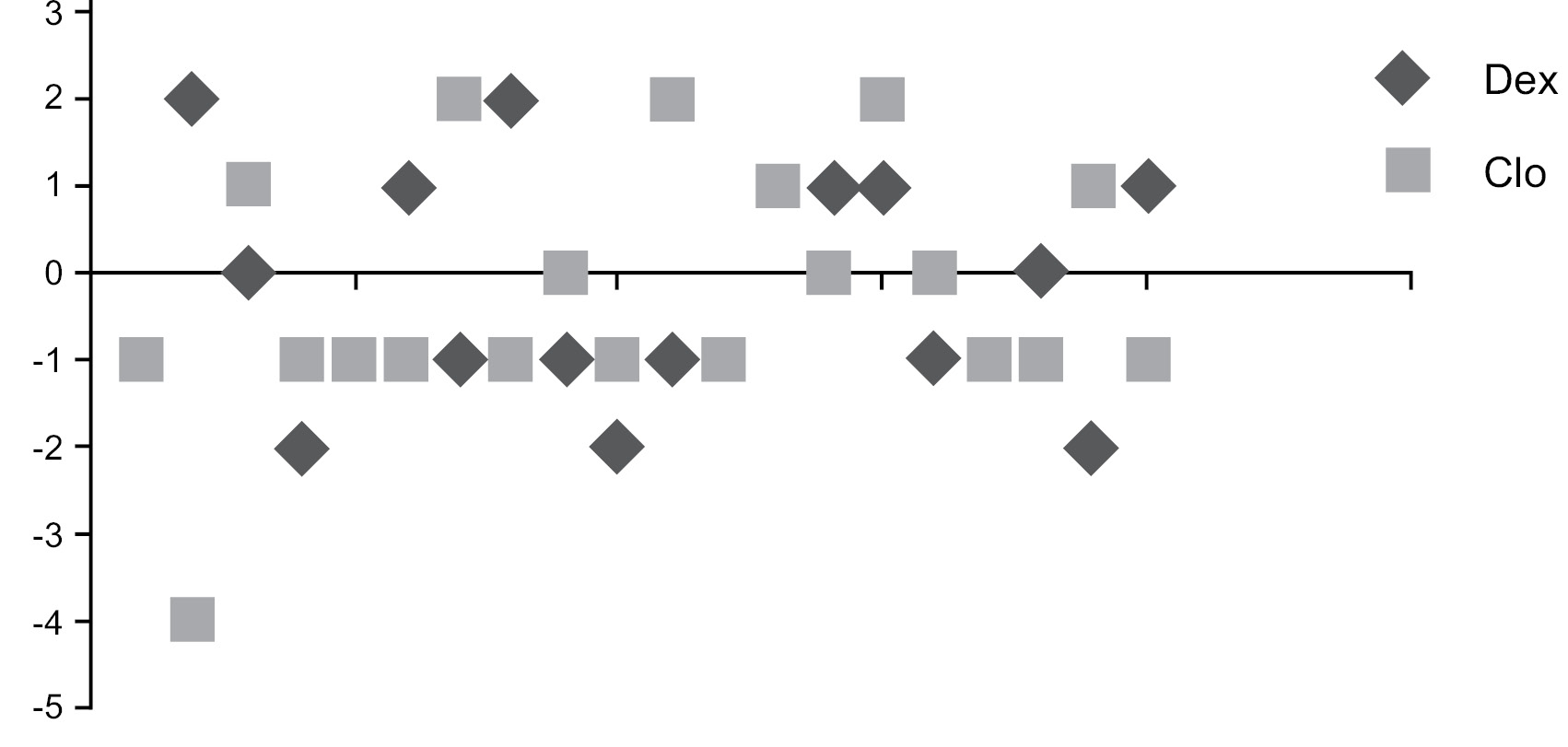 Во времени пробуждения не было зафиксировано значительной разницы между двумя группами (30 ± 35 мин в группе Д и 27 ± 23 мин в группе К). Благоприятный профиль послеоперационного пробуждения был отмечен в обеих группах (9,4±1 балл по шкале Aldrete scale в обеих группах), большинство пациентов соответствовало категории «спокойных» по шкале RASS (-0,1±1,3 балла в группе Д и -0,3±1,5 балла в группе К). Значение по шкале RASS >2, что соответствует выраженной ажитации, было зафиксировано у 2 пациентов группы Д и в 3 случаях в группе К (рис. 3).
