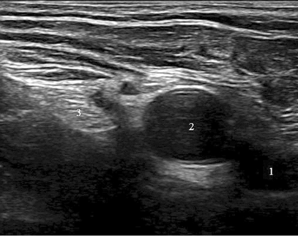 Note. 1 — femoral vein, 2 — femoral artery, 3 — femoral nerve.