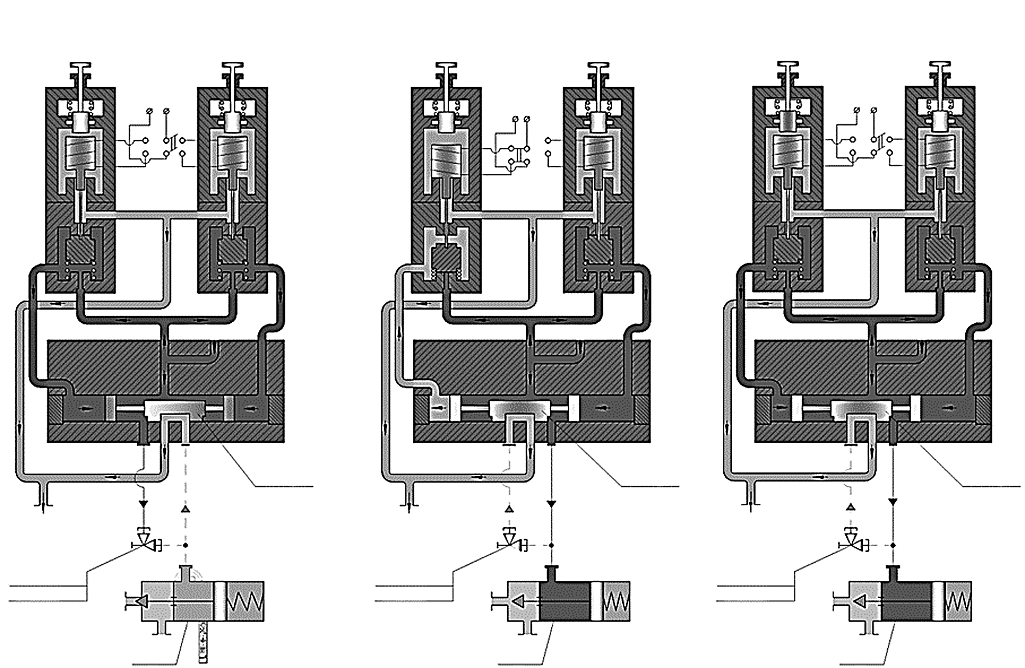 Рис. 4. Принцип действия распределителей Т055.064.