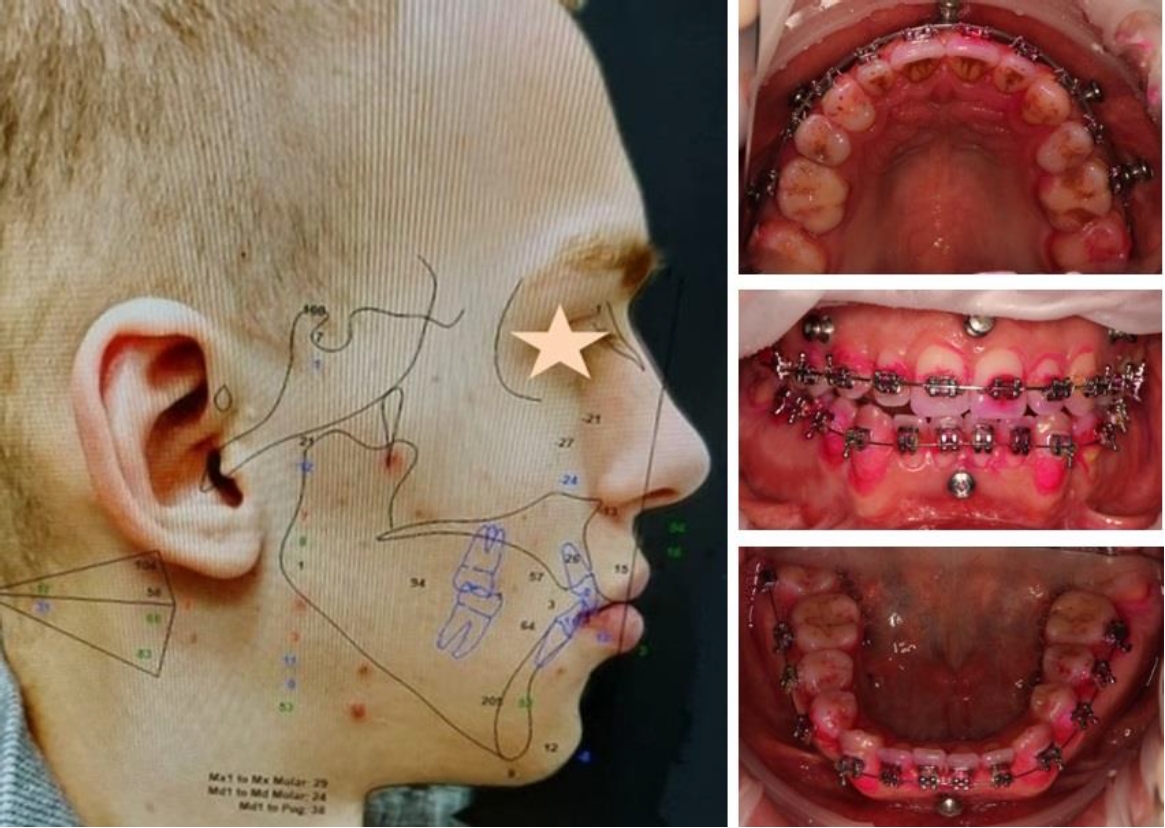 Рис. 4. Лицевые признаки и состояние окклюзионного статуса на этапе предхирургической ортодонтической реабилитации