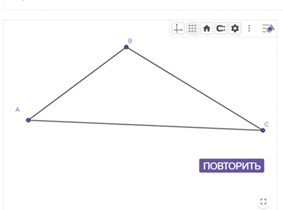 На рис. 2 представлено задание квеста «Архитектура Самары», где учащимся необходимо вписать окружность в треугольник ABC.