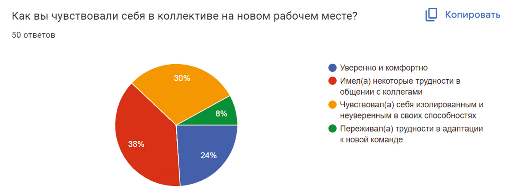 Рис. 1. Итог опроса: «Как вы чувствовали себя в коллективе на новом рабочем месте?»